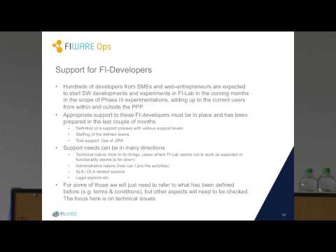 2014年にミュンヘンで開催された ECFI-2 からのプレゼンテーション。 XIFI プロジェクトに代わって Federico Alvarez が発表しました。 これは、"FIWARE Ops - an Overview" というタイトルのプレゼンテーションの YouTube ビデオへのリンクです。このビデオ・プレゼンテーションは、 FIWARE Ops の紹介です。これは、FIWARE Lab が提供する実験的な インフラストラクチャを使用してビジネスソリューションを展開およびテスト することを望む、中小企業およびアクセラレータに XIFI プロジェクトによって提供される最後のプレゼンテーションです。